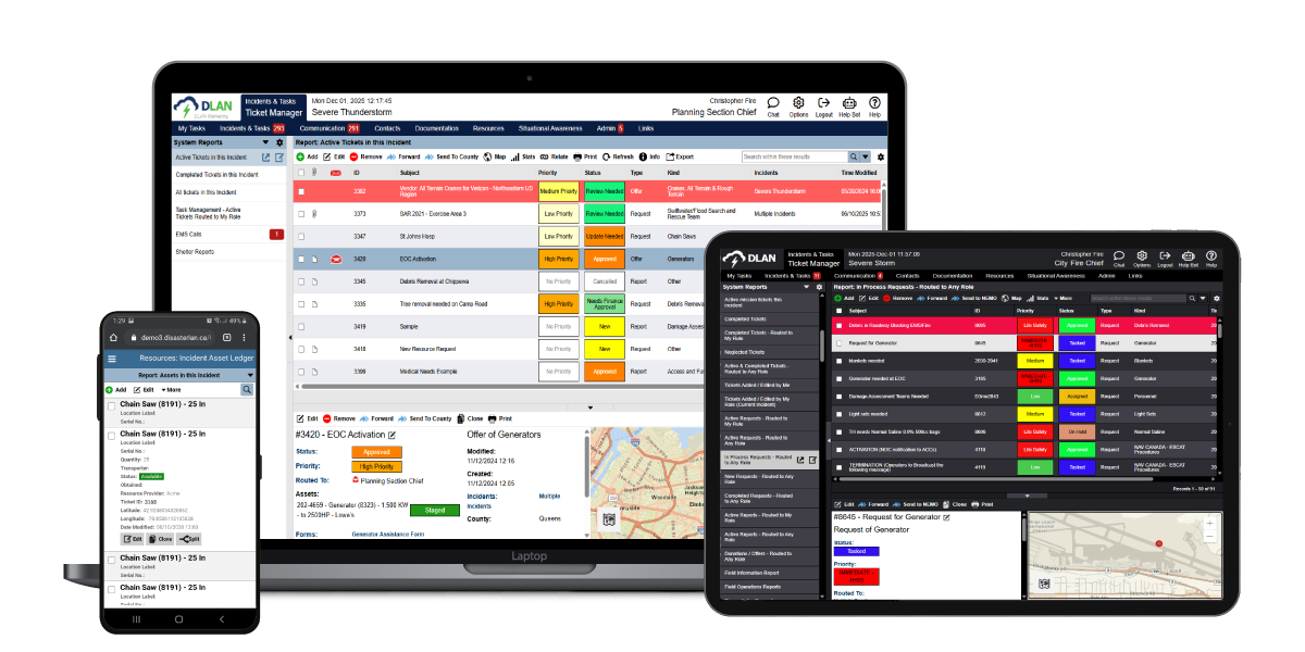 Visualize incidents, assets, weather, and critical infrastructure on a single live map.