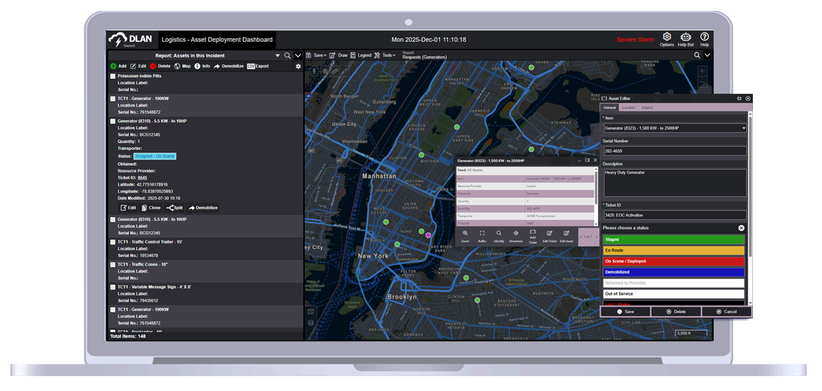 Visualize incidents, assets, weather, and critical infrastructure on a single live map.