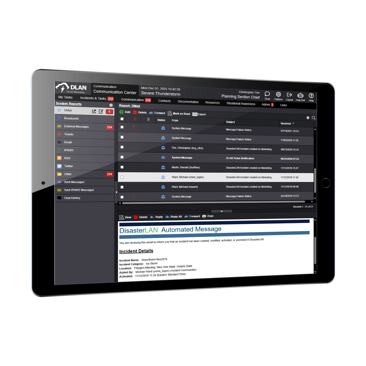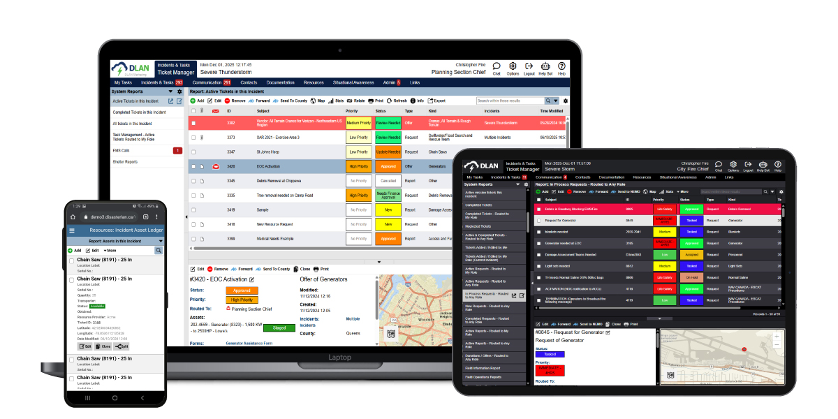 Task and mission information can be entered, prioritized, routed/assigned, and tracked from start to completion.